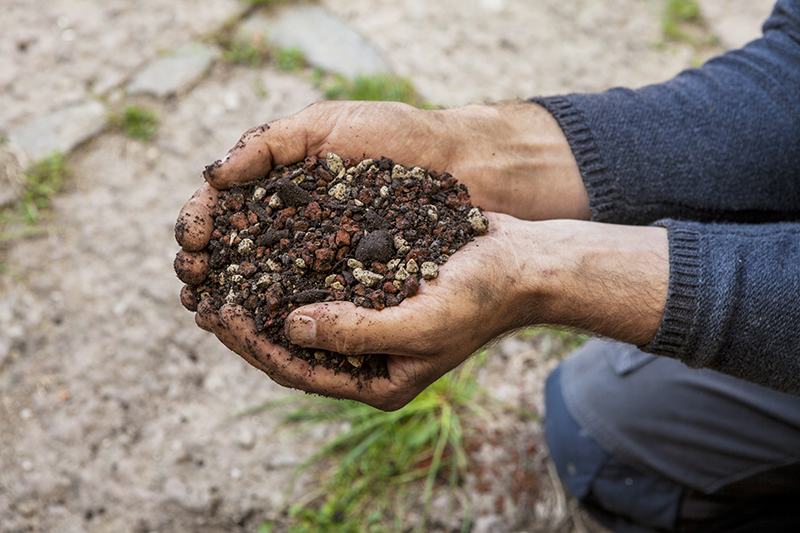 Nyckeln till regnbäddens funktion och hållbarhet är en kombination av växtval och Hekla Regnbädd, ett växtsubstrat som innehåller isländsk Hekla Pimpsten. Med sin 85-procentiga porositet har den en unik förmåga som gör att växtsubstratet kan lagra stora mängder vatten och bevara det under lång tid av torka.